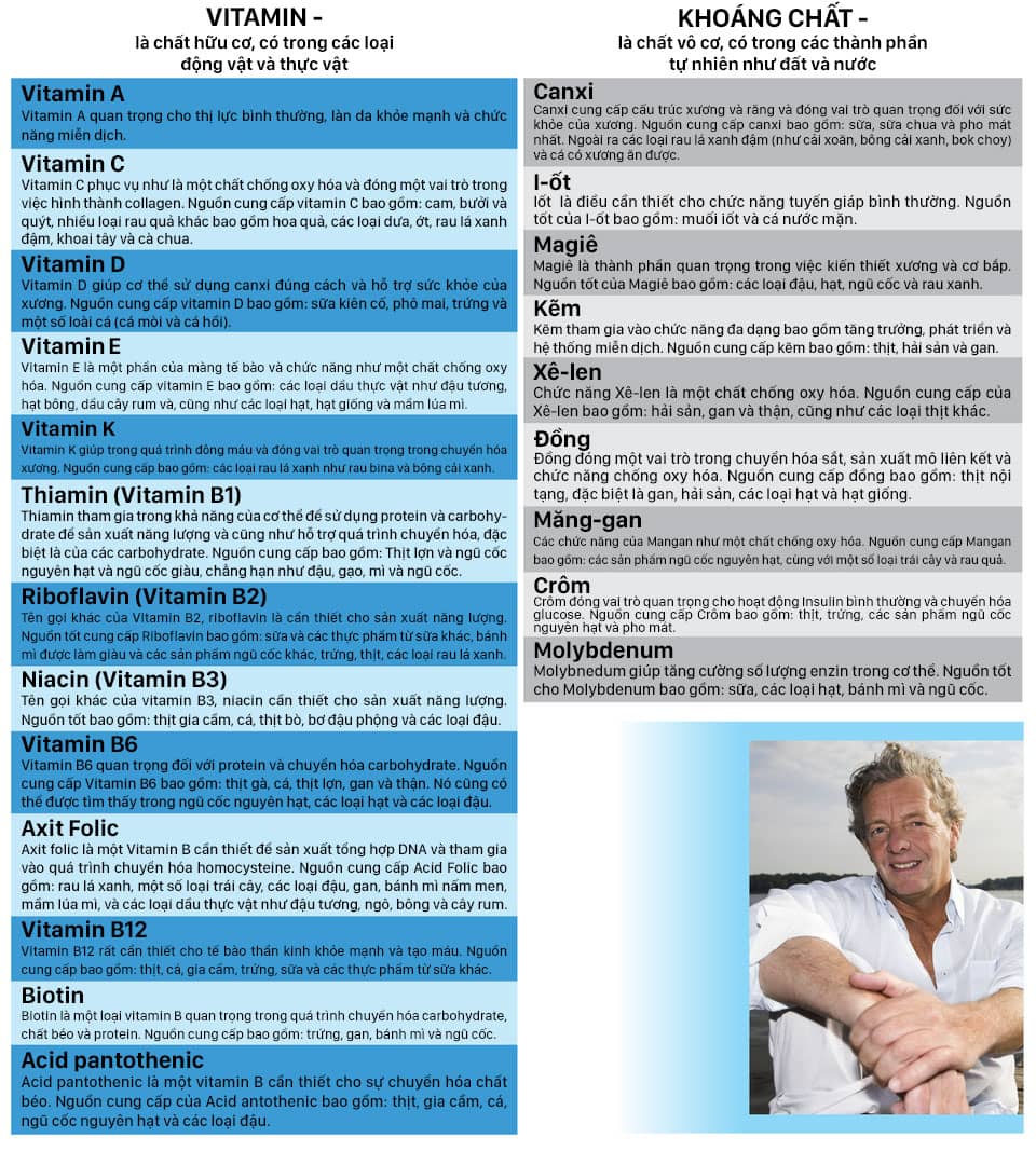 Vitamin và khoáng chất là những chất dinh dưỡng cần thiết đóng một vai trò quan trọng trong sự tăng trưởng và phát triển khỏe mạnh. Nếu không có chúng, chúng ta có nguy cơ thiếu hụt dinh dưỡng đáng kể. Bởi vì cơ thể không lưu trữ tất cả các vitamin thiết yếu trong thời gian dài, một số nên được tiêu thụ thường xuyên trong chế độ ăn.
